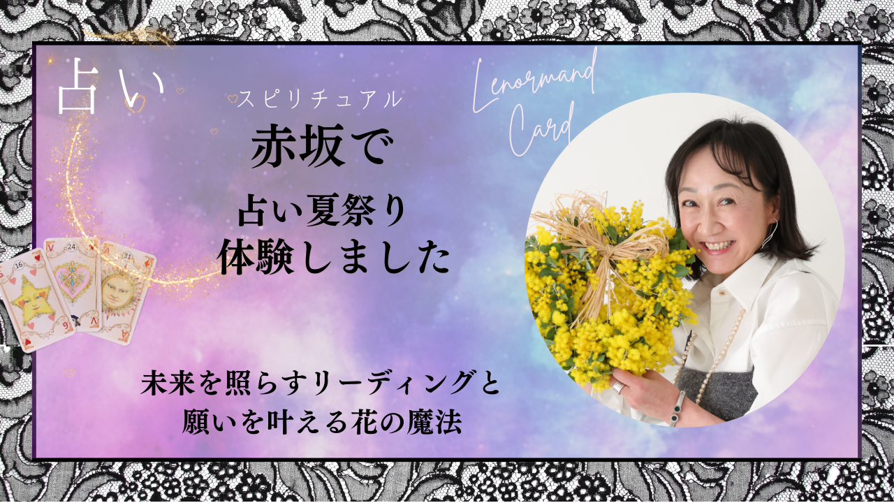 赤坂の占い夏祭りは、想像以上に温かいイベントでした。パワーストーンやタロット、龍のメッセージといった占いを通して、自分らしさを改めて確認できた一日。占い師さんたちとの再会や新しい出会いもあり、「行ってよかった」と心から思いました。