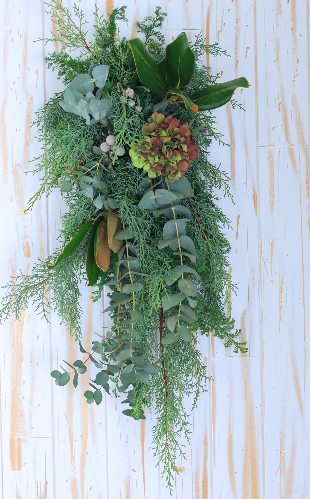スワッグは、壁やドアに飾る花束のようなアレンジ。