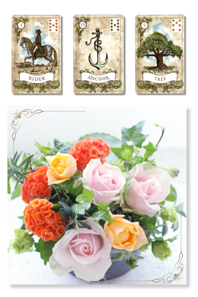 まずは私の自己紹介から。花の仕事とルノルマン占いを組み合わせて活動していることや、どうしてカードに惹かれるようになったのかを、少しストーリーを交えて話しました。参加者も一人ずつ自己紹介をしてくださって、最初から和やかな雰囲気になりました。「なぜこの体験会に来たのか」を聞くだけで、その方の思いが伝わってきます。