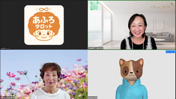 Camo cameraを使ってカードを映したり、画面共有で説明したり。ちょっと準備に手間取った部分もありましたが、オンライン占いイベントだからこそできる工夫です。カードの絵柄を全員で見ながら話せるのは、リアルと違った良さ。これからもっと便利に、わかりやすく進めていけそうだなと感じました。