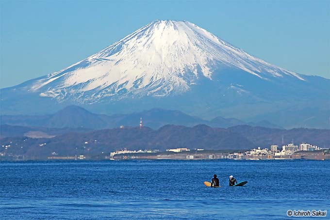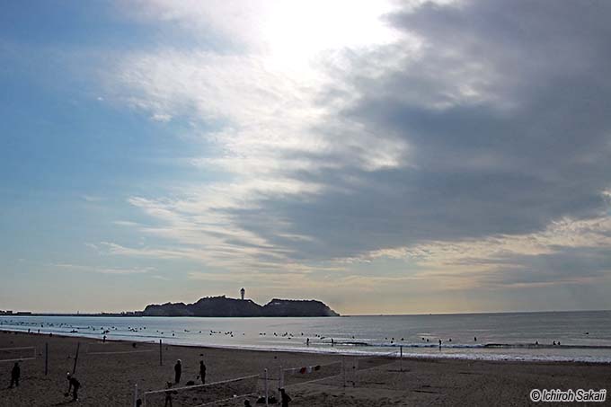波打ち際を歩き、サーファーの姿を眺め、シャッターを切る。
