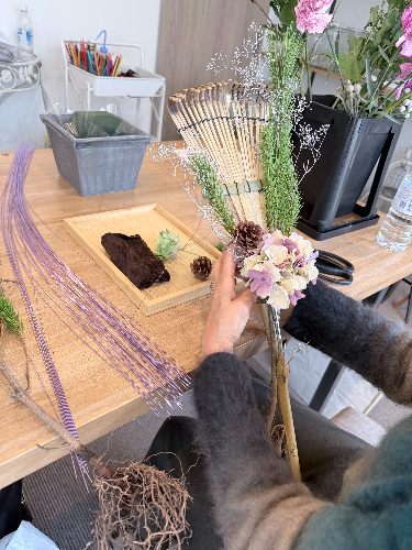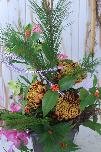お正月フラワーアレンジメント和モダンなデザインで新年を迎えるレッスンの記録