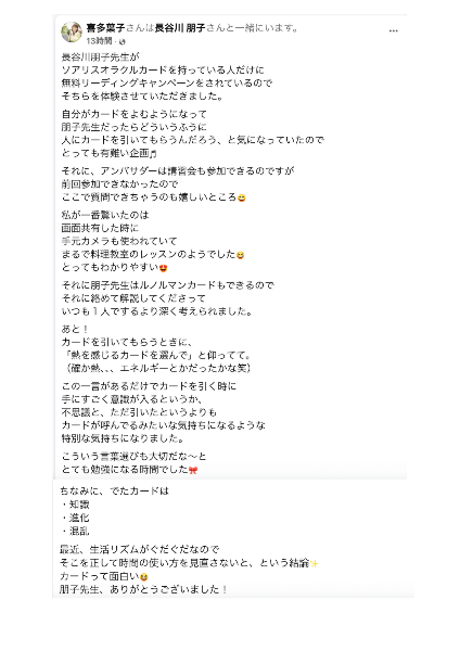 この講習会では、ソアリスカードを作られた貴子先生から、直接学ぶことができます。